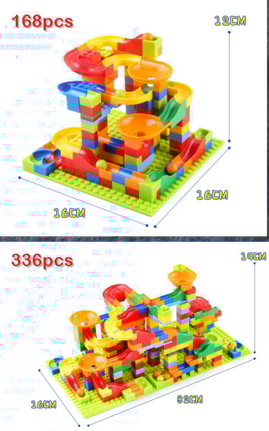 - The child can assemble different marble run models by thinking and watch the marbles race through the track.